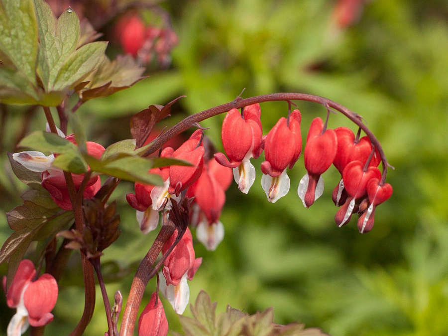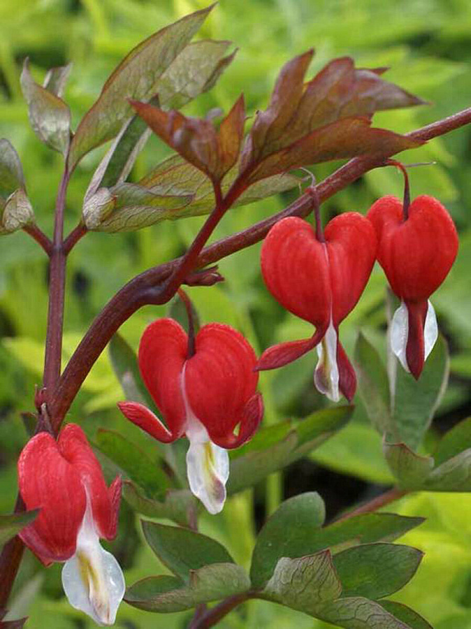 Рассада Дицентры великолепной Valentine (Валентина) будет изюминкой цветника. Экзотическое не только название растения (до 70 см в высоту) – оно все необычно и очаровательно. Многолетник цветет с конца весны (30-35 дней), выбрасывая дугообразные кисти соцветий (до 20 см длиной), увешанных нежными кроваво-алыми цветками. Цветонос подобен «разбитому» сердечку с загнутыми раздвоенными лепестками. Семенами практически не размножается.