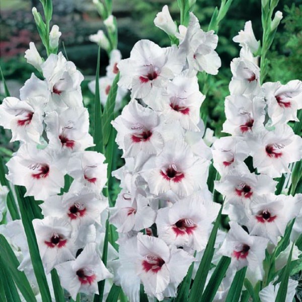 Гладиолус крупноцветковый Фьёрентина - это великолепное растение, которое поразит вас своей красотой и изяществом. Его стебель достигает высоты от 80 до 110 см, а цветки белого цвета привлекают внимание своей изысканной окраской. Листья гладиолуса имеют форму, напоминающую меч, что добавляет этому растению особый шарм.