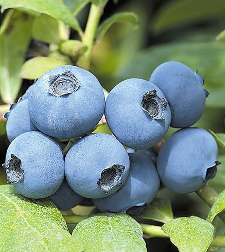 Крупномеры стоит высаживать в места, защищенные от морозных ветров. Ароматные плоды средней величины имеют светло-синий оттенок и покрыты сизым налетом, вкус приятный с кислинкой. Голубика высокорослая Чантиклер может приносить до 6 кг ягод с одного куста, плодоносить начинает с конца июня.