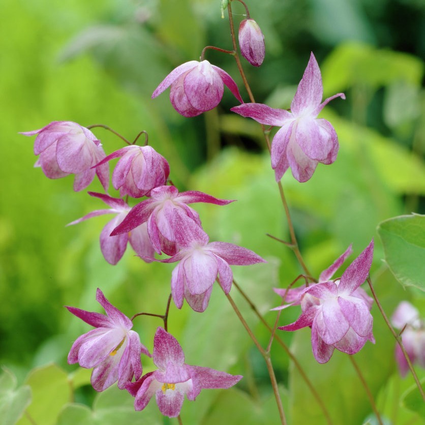 Рассада горянки Юнга Розеум (Epimedium youngianum Roseum) относится к группе многолетних цветов, привлекающих внимание нежными бутонами изящной формы. Кустики невысокие, 40 сантиметров, почвопокровные с тонким вертикальным цветоносом. Предпочитают полутень, к почвам нетребовательные, но погибают при переувлажнении. Декоративна зелень: молодая с бронзовым отливом, осенью становится коричневых оттенков. Цветы появляются в мае, небольшие, в диаметре около 2 сантиметров, нежного лавандово-розового оттенка, характерной причудливой формы. Эффектны на любых клумбах.