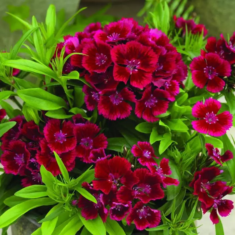 Гвоздика турецкая diabunda red - это великолепное растение с красивыми красными цветками, которые радуют глаз в течение нескольких месяцев в году. Ее стебель прочный и прямой, достигает высоты до 15-20 см. Листья гвоздики турецкой имеют ярко-зеленый цвет и создают удивительный контраст с яркими цветками.