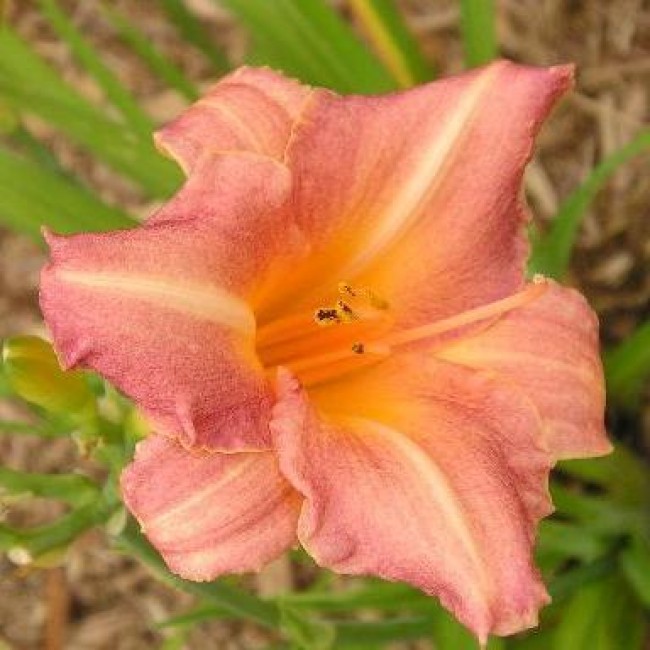 Окраска цветка : Лососево-розовая с жёлтым горлом