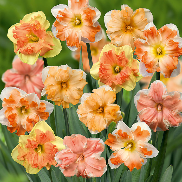 Луковицы нарцисса Смесь Окрасок представлены несколькими сортами ароматных весеннецветущих растений, которые отличаются не только расцветкой, но и формой цветов. Есть культуры с узкими заостренными лепестками, с сильно гофрированными коронами, с миниатюрными махровыми бутончиками и другие. Окраска цветов: от белоснежной до насыщенно-оранжевой. Высиживать луковицы нарцисса Смесь Окрасок рекомендуют на хорошо освещенной территории, однако подойдет и легкая полутень. Почву лучше всего выбирать суглинистую и в меру плодородную, с хорошим уровнем влаго- и воздухопроницаемости.
